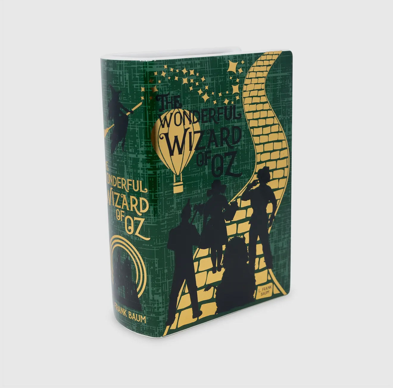 Take your love for the classics one step further with this Wizard of Oz decorative book vase. Featuring artwork influenced by a beloved title and a multifunctional design, this unique piece is sure to dress up any room. Fill this ceramic vase with fresh flowers or your favorite kitchen utensils to adorn your space with the most practical bookish charm.